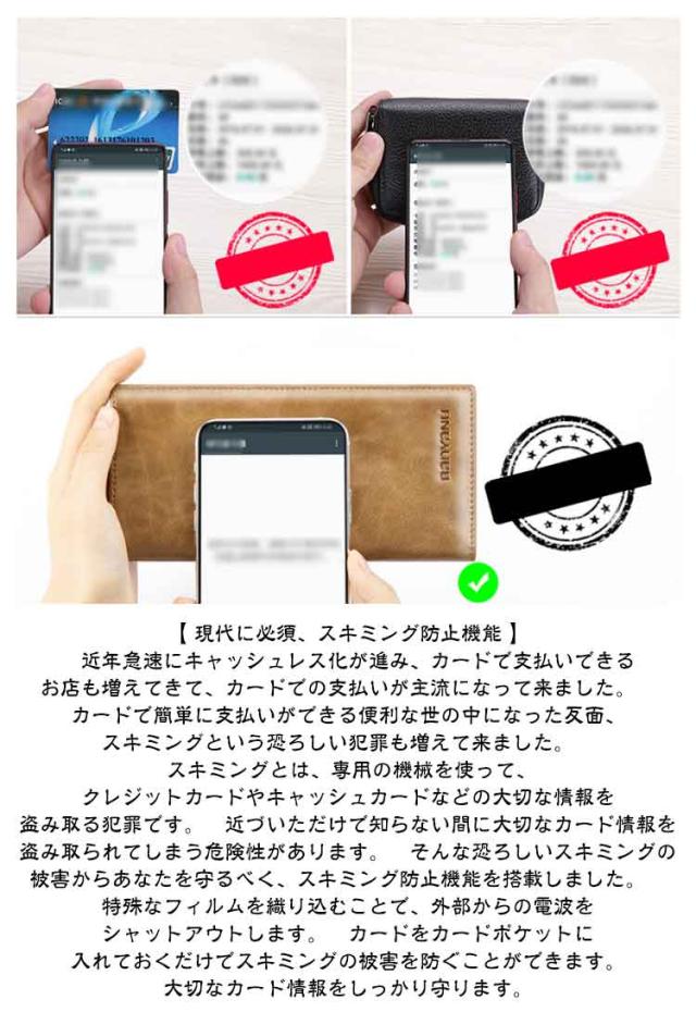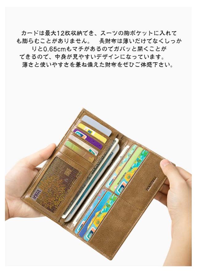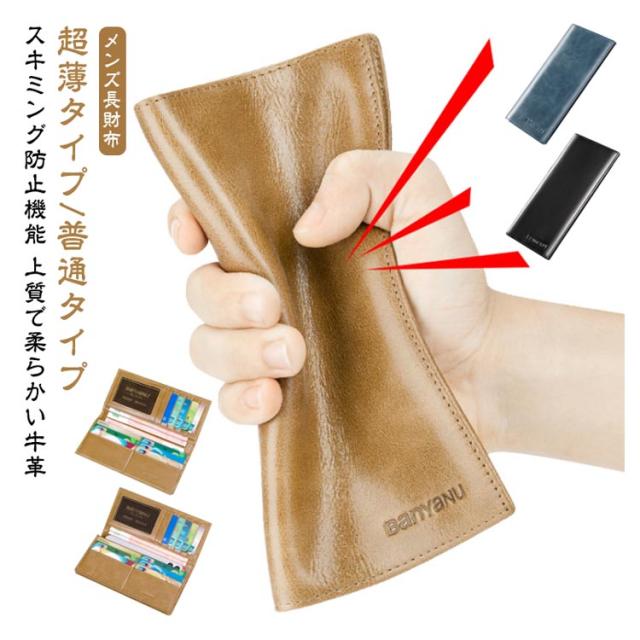 | 超薄タイプ/普通タイプ スキミング防止機能 上質で柔らかい牛革 メンズ長財布 ★★【 ずっとあなたと共にする財布 】 いい素材の財布を長くご愛用頂けるよう素材選びから徹底的にこだわりました。 革職人が厳選した牛革 を贅沢に100%使用しました。 革本来の香りと滑らかな肌触りをご体感頂くことができます。 また、天然なめしの最上級の革だからこそ楽しめる革の表情の変化も感じることができます。 長く使えば使うほど変化する革の表情をお愉しみ下さい。 長くご愛用頂き、あなた好みの財布に育て上げて下さい。 ★★【 現代に必須、スキミング防止機能 】 近年急速にキャッシュレス化が進み、カードで支払いできるお店も増えてきて、カードでの支払いが主流になって来ました。 カードで簡単に支払いができる便利な世の中になった反面、スキミングという恐ろしい犯罪も増えて来ました。 スキミングとは、専用の機械を使って、クレジットカードやキャッシュカードなどの大切な情報を盗み取る犯罪です。 近づいただけで知らない間に大切なカード情報を盗み取られてしまう危険性があります。 そんな恐ろしいスキミングの被害からあなたを守るべく、スキミング防止機能を搭載しました。 特殊なフィルムを織り込むことで、外部からの電波をシャットアウトします。 カードをカードポケットに入れておくだけでスキミングの被害を防ぐことができます。大切なカード情報をしっかり守ります。 ★★【 薄さと容量の黄金比モデル 】 長財布をスーツのお尻ポケットに入れるのはちょっと…という場面がありますよね。 お尻ポケットに入れると財布が折れてしまい大切な財布を痛めてしまいます。 スーツの胸ポケットに入れても膨らむことが無いよう、収納士監修のもと、徹底して薄さにもこだわりました。カードは最大12枚収納でき、スーツの胸ポケットに入れても膨らむことがありません。 長財布は薄いだけでなくしっかりと0.65cmもマチがあるのでガバッと開くことができるので、中身が見やすいデザインになっています。 薄さと使いやすさを兼ね備えた財布をぜひご体感下さい。 ★★【 緻密な設計のカード収納 】 スムーズに取り出せるように設計から何度もやり直しました。普段通りの使い方でお使いいただくことができます。ストレスフリーでスマートさをより一層演出することができます。 | |