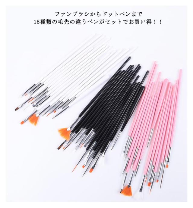 15本セット 筆 ネイル 送料無料 セット 3D ジェルネイルブラシ アート ネイル 筆 ジェル ネイルブラシセットUV用 ネイルツール ネイル用品 ジェルネイル ネイルブラシセット 白 黒 ホワイト ピンク