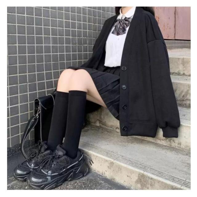 スクールカーディガン Vネック Vネック 羽織り レディース 高校生 裏起毛あり/無し 無地 学生服 アウター 中学生 黒 女子 制服 秋冬 春 大きいサイズ