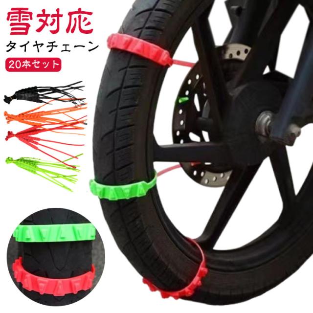 20本セット バイク タイヤチェーン オートバイ用 スノーチェーン バイク用 タイヤ チェーン タイヤチェーン 非金属 雪チェーン 簡易型 オートバイ用 スクーター用 滑り止めチェーン 簡単装着 雪道 悪路 滑り止め 事故防止 冬 車 雪道 汎用 緊急用 タイヤベルト