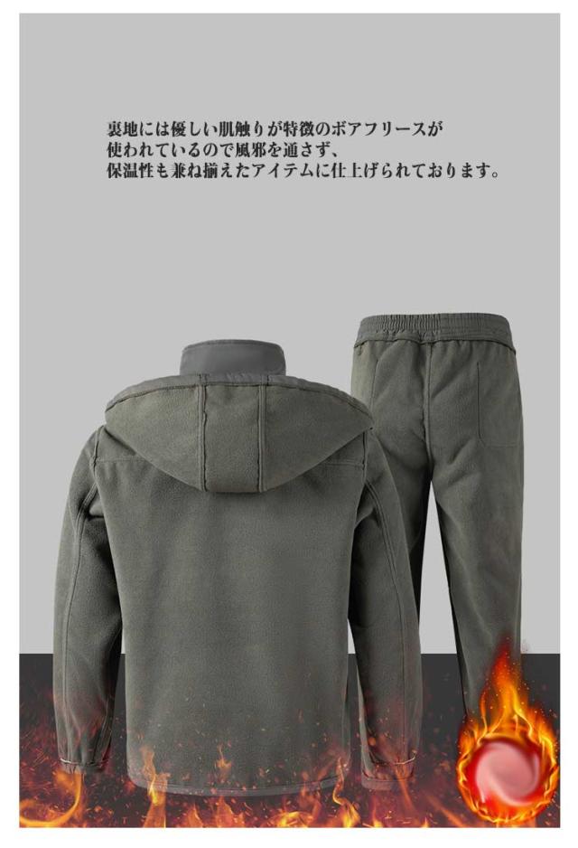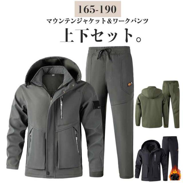 | マウンテンジャケット&ワークパンツ 上下セット。 裏地には優しい肌触りが特徴のボアフリースが使われているので風邪を通さず、保温性も兼ね揃えたアイテムに仕上げられております。 撥水加工で水を弾き、防風機能を備え生地からの冷たい風の侵入も防ぎます。 裏起毛でしっかり暖か、釣り、登山などアウトドアスポーツや屋外作業に最適! トレッキング、釣り、登山、山ガール、ウォーキング、バイクツーリング、キャンプ、サイクリング、ゴルフなど、様々なアウトドアシーンに着用できます。 | |
