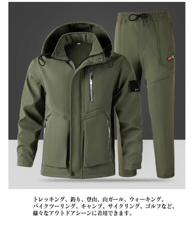 厚手 メンズ 防水 ワークパンツ メンズ ワークパンツ 撥水 裏起毛 アウトドアウェア 作業服 上下セット 防寒 ミリタリー セットアップ マウンテンジャケット 登山服 スキーウェア マウンテンパーカー 長ズボン ハイキングジャケット 防寒着