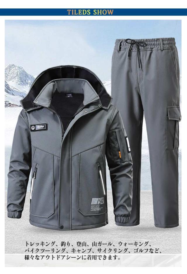 マウンテンジャケット ワークパンツ アウトドアウェア メンズ 裏起毛 作業服 防風 上下セット 厚手 撥水 防水 ワークパンツ ミリタリー 防寒 セットアップ 登山服 スキーウェア マウンテンパーカー 長ズボン ハイキングジャケット 防寒着