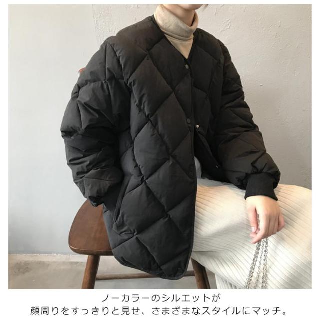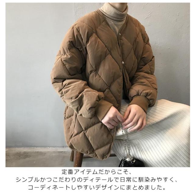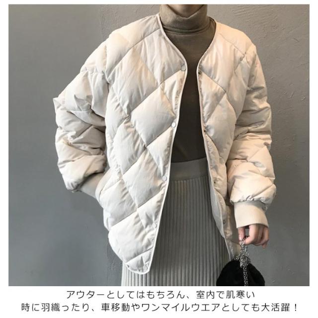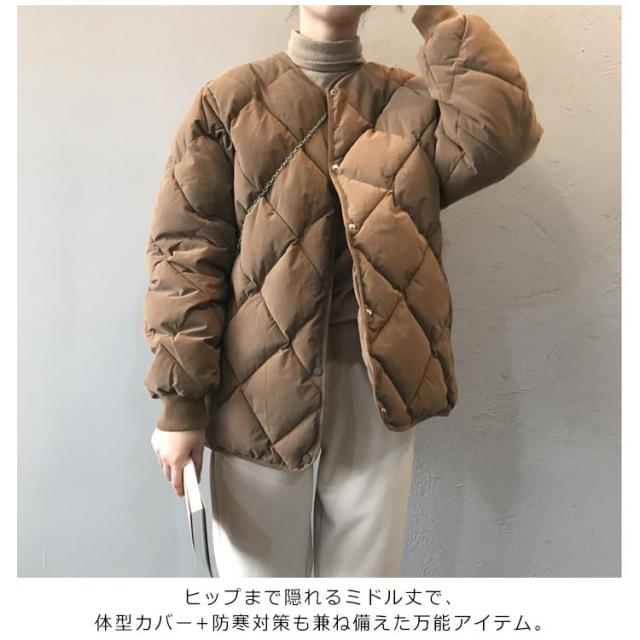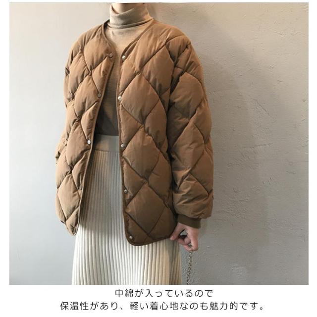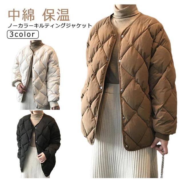 長袖 羽織り 中綿 ジャケット レディース アウター ノーカラーキルティングジャケット 中綿 ノーカラー キルティングジャケット ノーカラー 上着 キルト ノーカラーキルティングジャケット お尻が隠れる ドロップショルダー コート 保温 ポケット付き 無地 通勤 通学