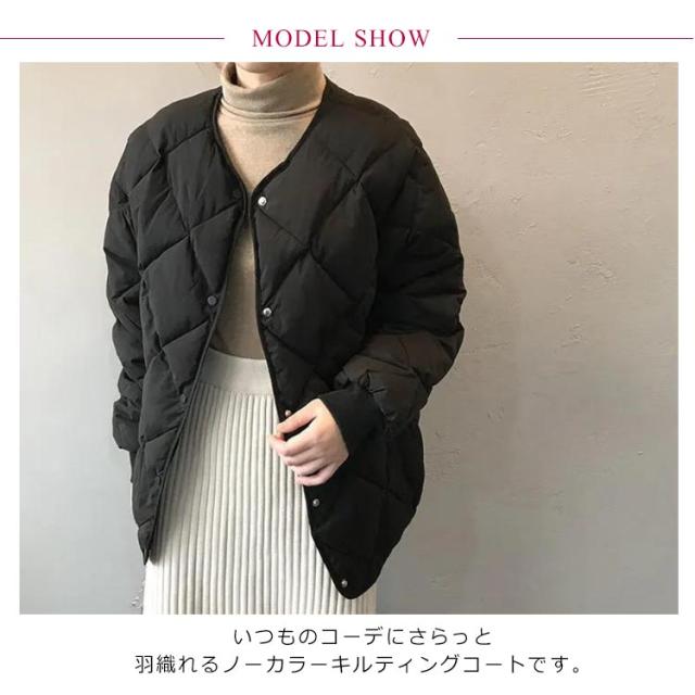 | いつものコーデにさらっと羽織れるノーカラーキルティングコートです。 ノーカラーのシルエットが顔周りをすっきりと見せ、さまざまなスタイルにマッチ。 中綿が入っているので保温性があり、軽い着心地なのも魅力的です。 ヒップまで隠れるミドル丈で、体型カバー+防寒対策も兼ね備えた万能アイテム。 定番アイテムだからこそ、シンプルかつこだわりのディテールで日常に馴染みやすく、コーディネートしやすいデザインにまとめました。 アウターとしてはもちろん、室内で肌寒い時に羽織ったり、車移動やワンマイルウエアとしても大活躍! | |