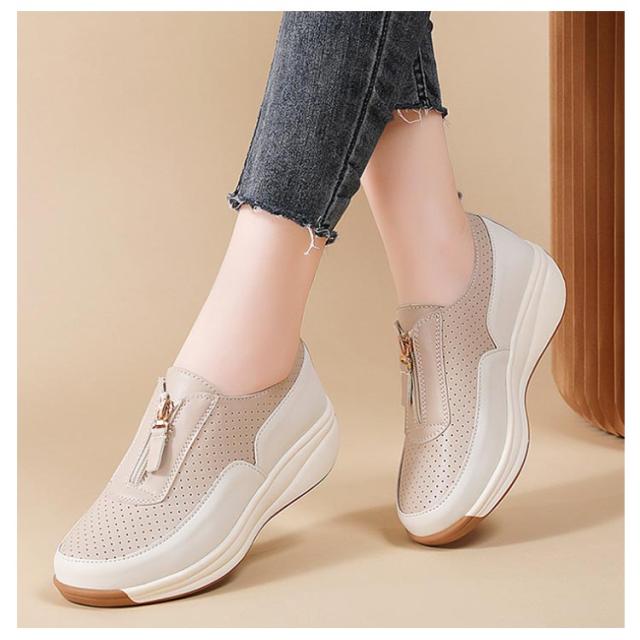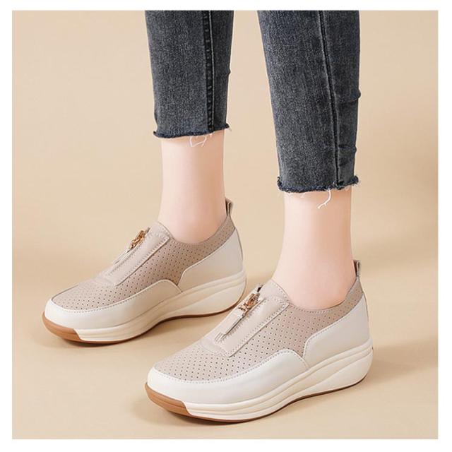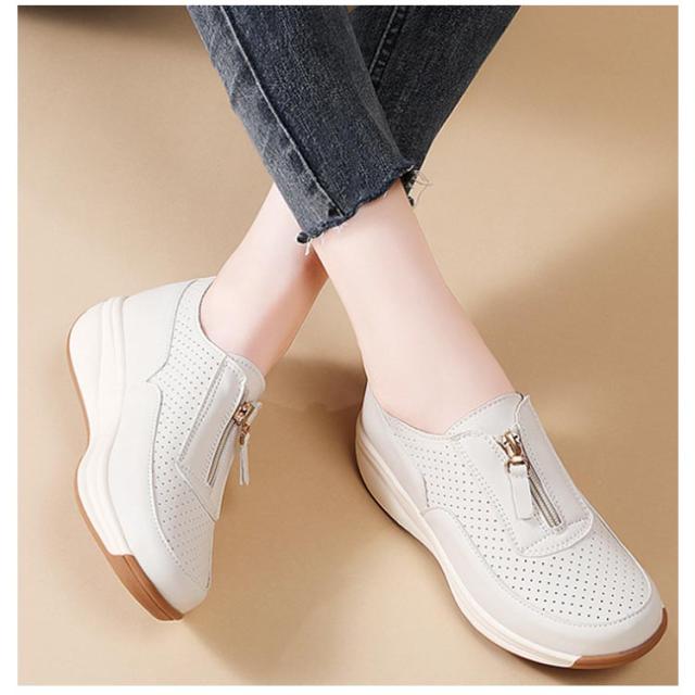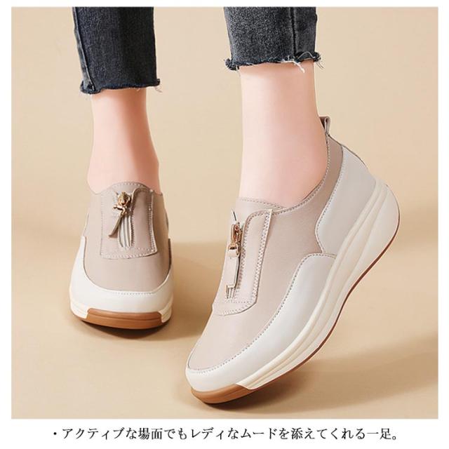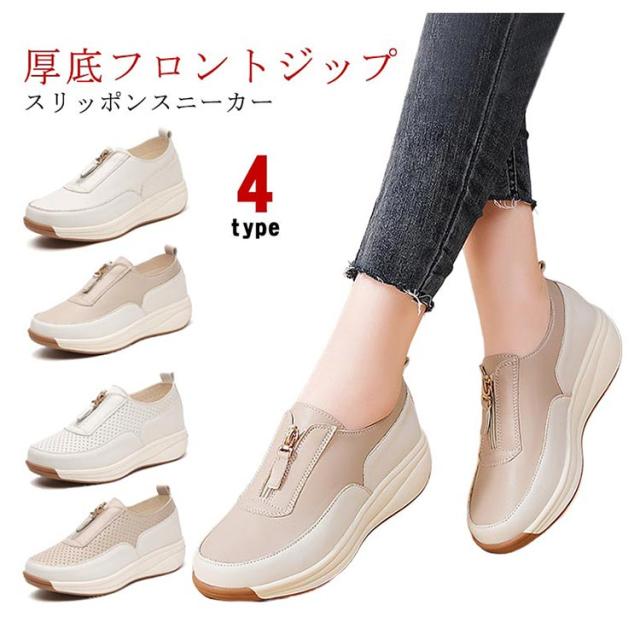 厚底 靴 スリッポン 厚底シューズ 4cmヒール 紐なし スリッポン メッシュ レディース ローカット オールシーズン 痛くない 歩きやすい 履きやすい フロントジップ 疲れない おしゃれ 女性 軽量 快適 通勤 オフィス