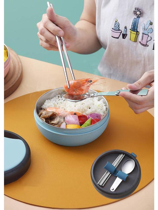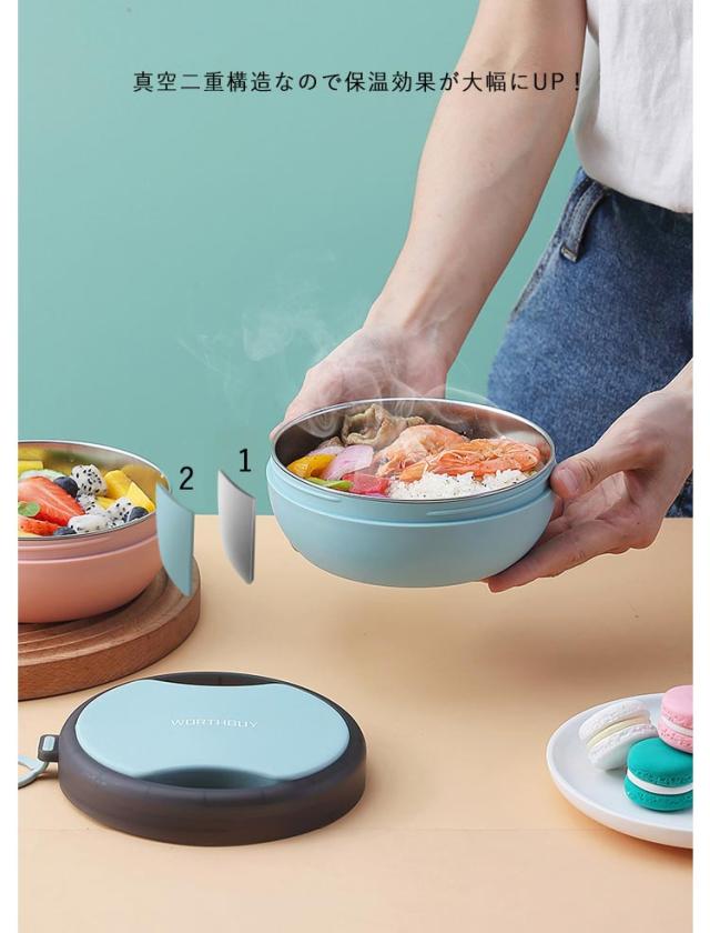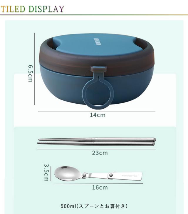 | 折り畳み可能スプーン&お箸付き!通勤、通学にぴったり保温弁当箱。 真空二重構造なので保温効果が大幅にUP! 温かいごはんはもちろん、スープやカレーなどランチの幅が広がる。 本体は絶対に電子レンジで使用しないでください。 | |