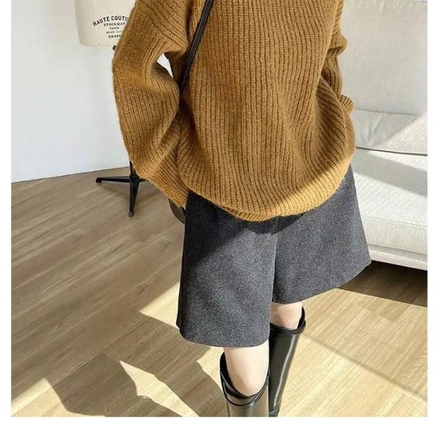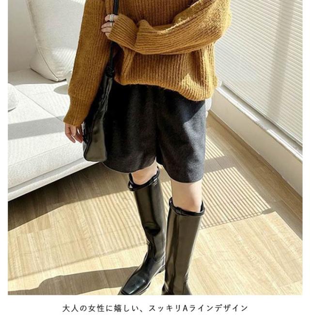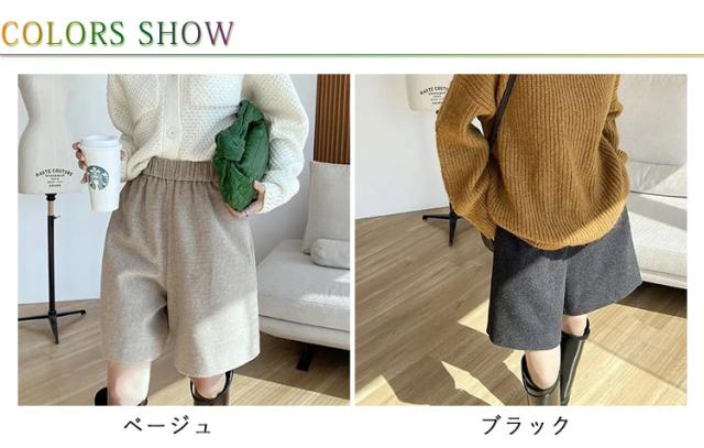 ゆったり ウールタッチ Aライン ひざ上 ハーフパンツ キュロットパンツ 膝丈 短パン 防寒 秋冬 厚手 ハーフ丈 大きいサイズ ショートパンツ ショーパン 暖かい 五分丈 黒 上品 体型カバー シンプル ハーフパンツ きれいめ 秋 冬 カジュアル すっきり 無地 大人女性