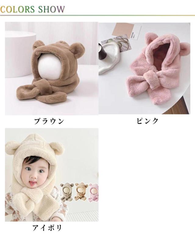子供用帽子 もこもこ ネックウォーマー 帽子 くま スヌード 暖かい マフラー 赤ちゃん キッズ 防寒 クマ ふわふわ 一体型 子ども 誕生日 冬 マフラー付き帽子 かわいい ベビー 雪遊び あったか ベビー プレゼント ギフト