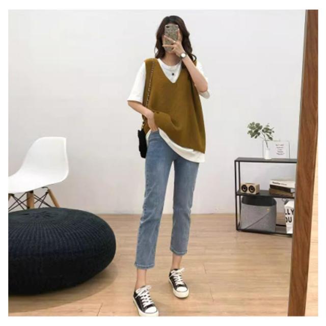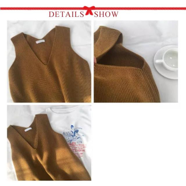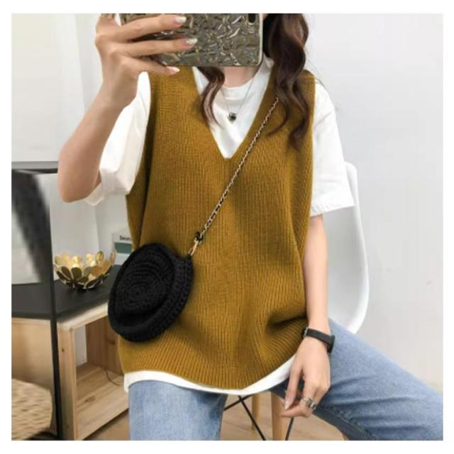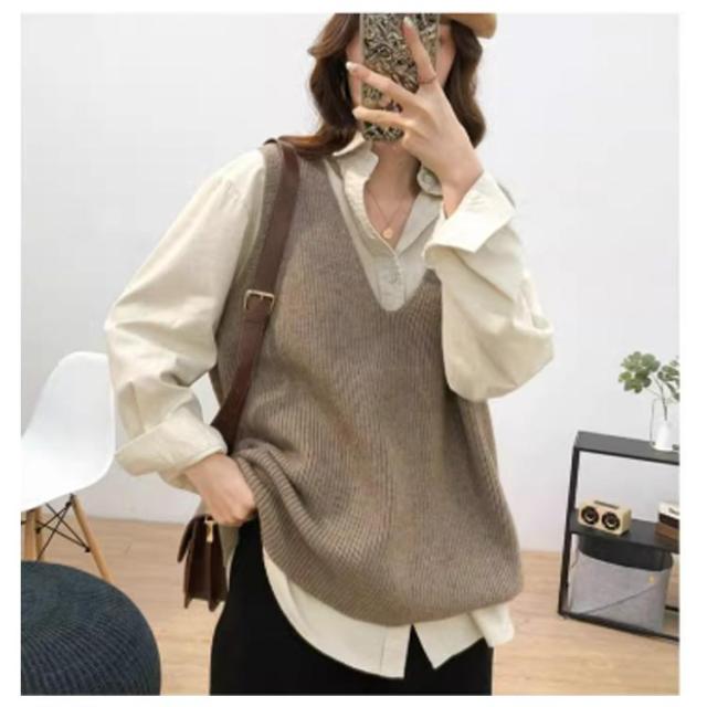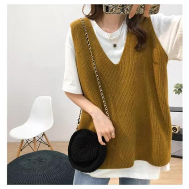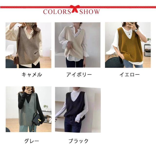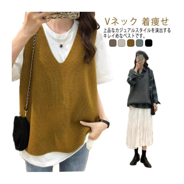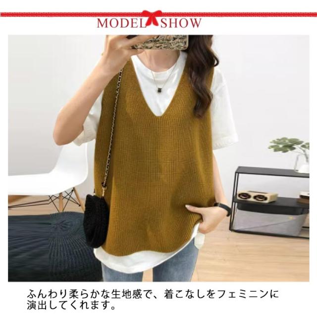 ニットベスト レディース お洒落 Vネック トップス 秋冬 ベスト ノースリープ セーター シンプル レイヤード風 無地 カジュアル ニットベスト 重ね着 可愛い ファッション キレイめ 通勤 着痩せ