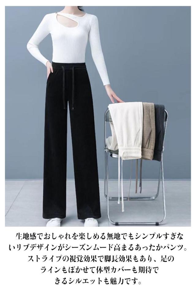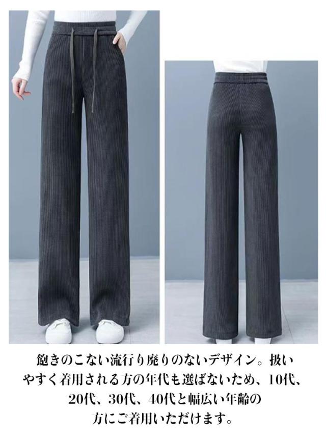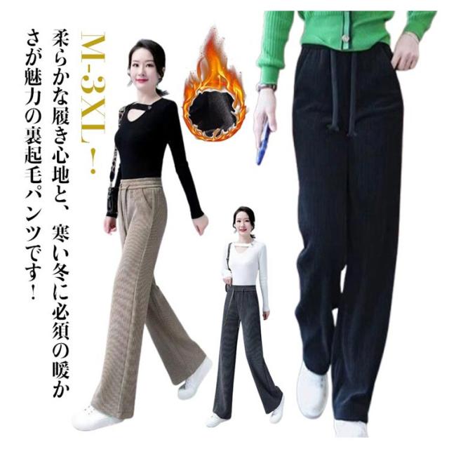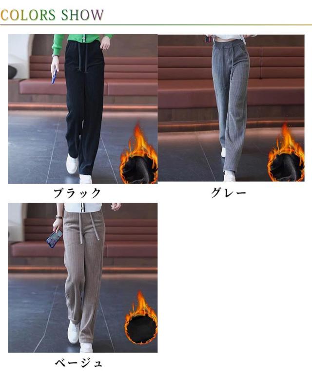 秋冬 ボアパンツ リブパンツ ストレートパンツ 裏起毛 長ズボン パンツ ワイドパンツ ハイウエスト 秋 コーデュロイ 裏起毛 脚長 極暖 裏ボア パンツ カジュアル あったかい 美脚 レディース ストレートパンツ 20代 30代 40代 50代 春 パンツ ルームウェア 無地