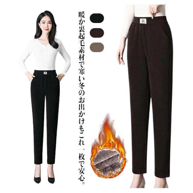 裏起毛 ボトム レディース 暖か 裏起毛 秋 冬 暖かい ボトムスボアワイドパンツ R文字パンツ 裏起毛 あったか 冬 ボア リブ リブパンツ おでかけ