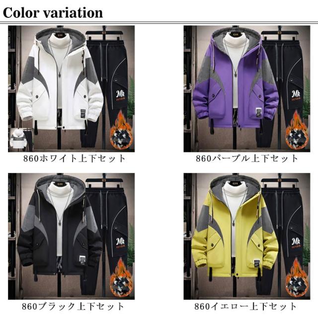 メンズ 2点セット ウインドブレーカー 裏起毛 セットアップ 上下セット マウンテンパーカー キッズ ジップアップ アウトドアジャケット フード付き 登山ウェア セットアップ 登山服 ゴルフウェア 防寒 ロングパンツ 防風 防汚 無地 秋 冬