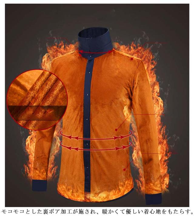| メンズ用の長袖裏起毛シャツ。 モコモコとした裏ボア加工が施され、暖かくて優しい着心地をもたらす。 メインとしても、コートやジャケットなどと重ね着してもよろしい。 幅広い場合で着こなせて、秋冬ファッションに必ず大活躍のアイテム! | |