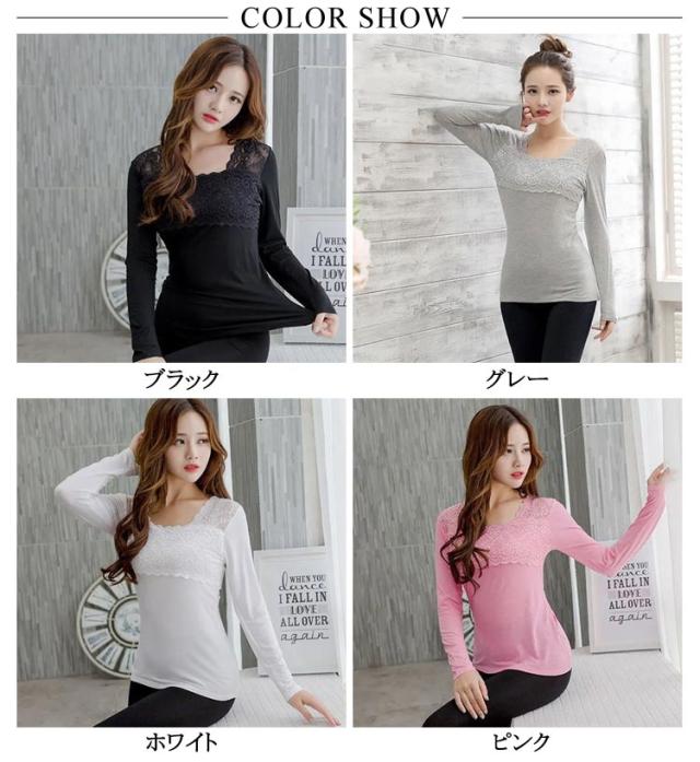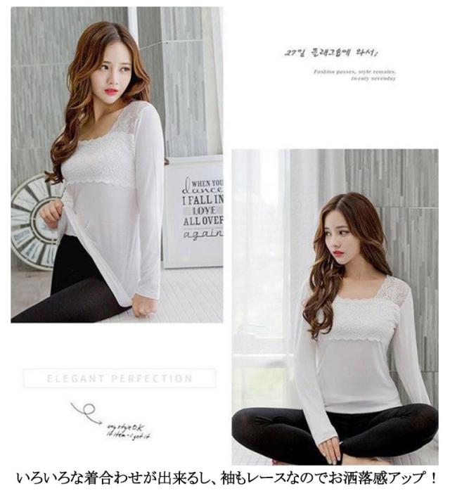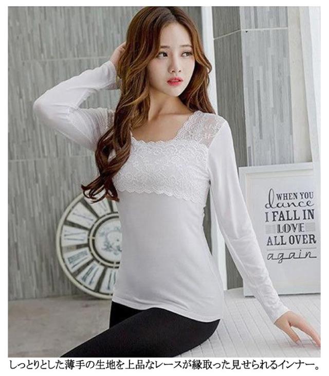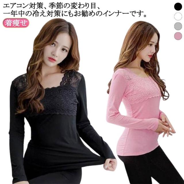 インナーシャツ インナー カットソー レディース レース 長袖 重ね着 カジュアル トップス ストレッチ性 シンプル 無地 お洒落 きれいめ Vネック インナー 春秋冬 キレイめ フェミニン 着痩せ