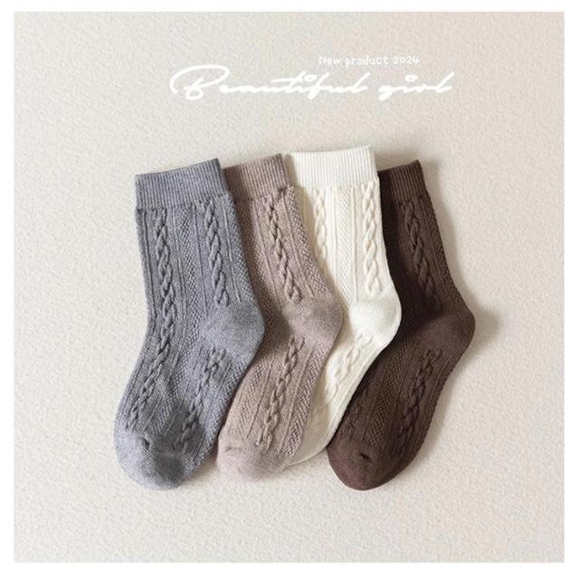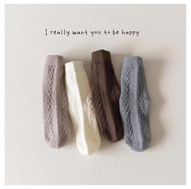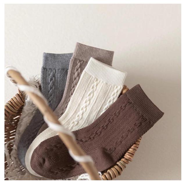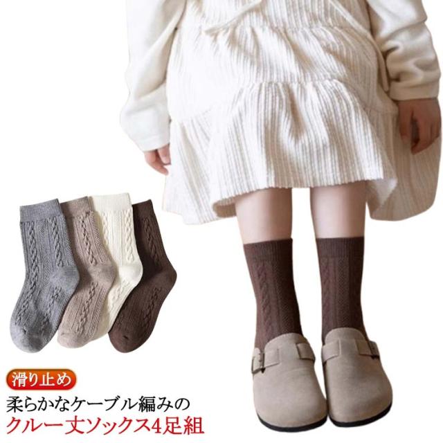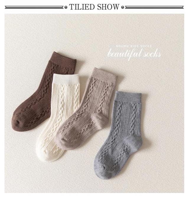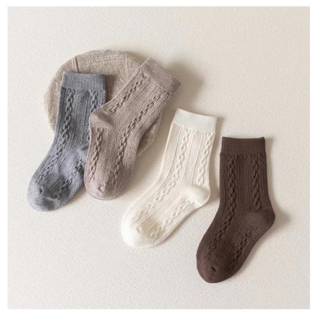 靴下 4足組 ケーブル編み 15-22cm クルー丈ソックス 3D立体ケーブル編み リブ網 ソックス 女の子 男の子 靴下 靴下 滑り止め 可愛い ソックス 通学 通園 登園 女の子 子供 キッズ 棉 無地 靴下 ベビー ソックス 赤ちゃん 子供 キッズ 送料無料