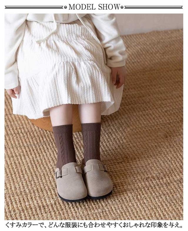| 柔らかなケーブル編みのクルー丈ソックス4足組。 くすみカラーで、どんな服装にも合わせやすくおしゃれな印象を与え。 | |