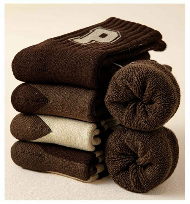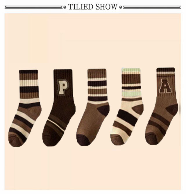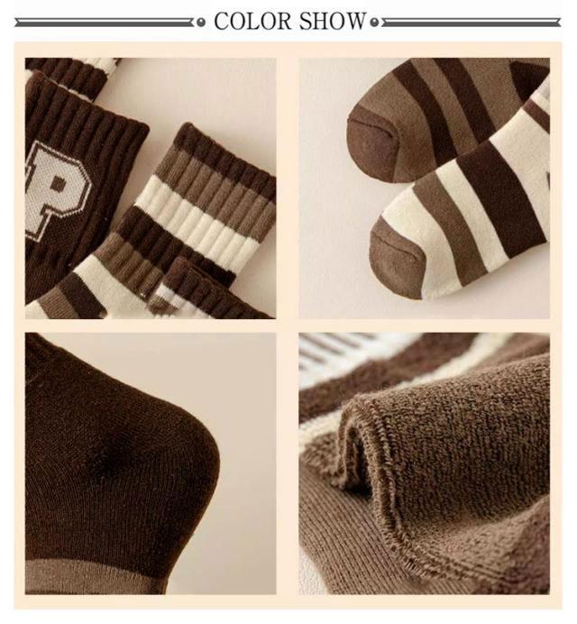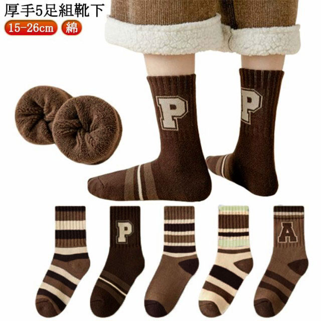 【厚手 5足組 靴下】キッズ 靴下 厚手 男の子 女の子 ボーター柄 ブラウン コーヒー キャメル 15cm 16cm 17cm 18cm 19cm 20cm 21cm 22cm 23cm 24cm 25cm 26cm 冷え防止 防寒 パイル ソックス 冬 クルー ソックス スポーツ 子供服 送料無料
