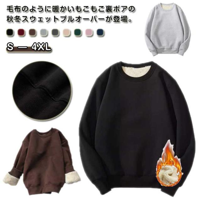 レディース 9色 裏起毛 トレーナー 裏ボア S-4XL ゆったり レディーストレーナー 防寒 無地 フードなし クルーネック おしゃれ 暖かい スウェット 長袖 大きいサイズ 韓国 メンズ かわいい 男女兼用 大人 部屋着 ルームウェア 9色 春 秋 冬