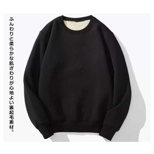 | S-4XL! ふんわりと柔らかな肌ざわりが心地よい裏起毛素材。 毛布のように暖かいもこもこ裏ボアの秋冬スウェットプルオーバーが登場。 しっかり厚みがありながら、軽い着心地が魅力です。 暖さをキープしながら大人可愛いシンプルなカジュアルスタイルを楽しめます。 パジャマ代わりの寝間着やルームウェア、ジムでのトレーニングウェアとしてもご利用いただいてます。 | |