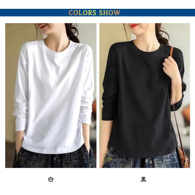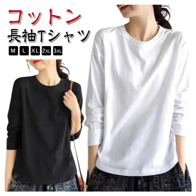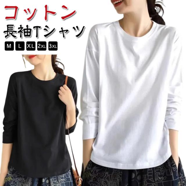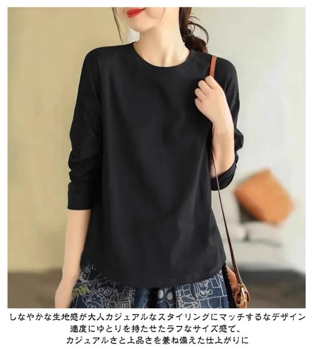 長袖tシャツ インナーtシャツ クルーネック 秋冬 春 ロンt インナー ロングtシャツ 綿 tシャツ カットソー ゆったり レディース 秋物 ナチュラル 大人 カジュアル 黒 白 大きいサイズ 無地 シンプル ホワイト ブラック 長袖 トップス