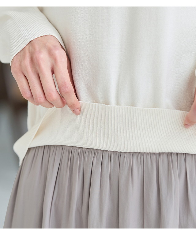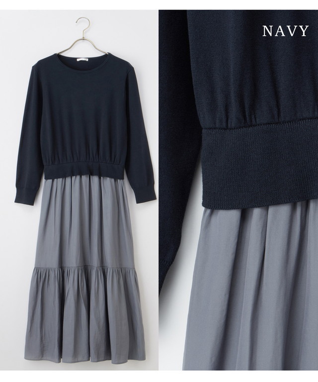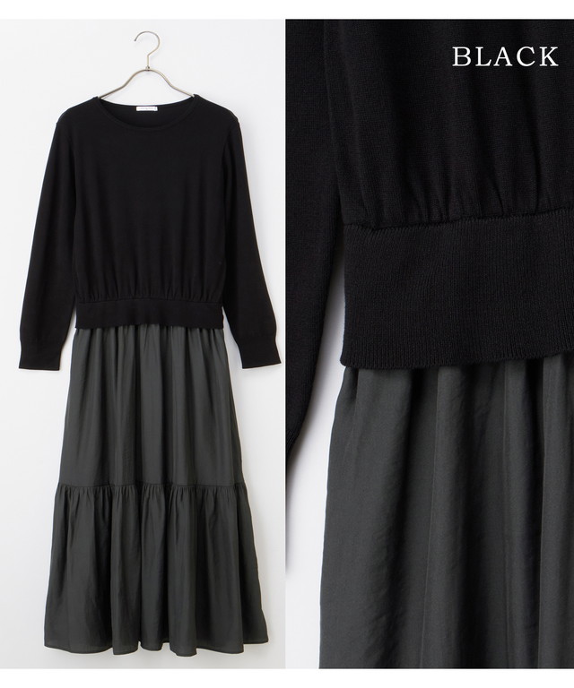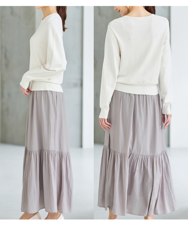 シンプルなニット×大人可愛いティアードスカートのドッキングデザイン。