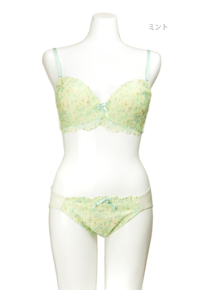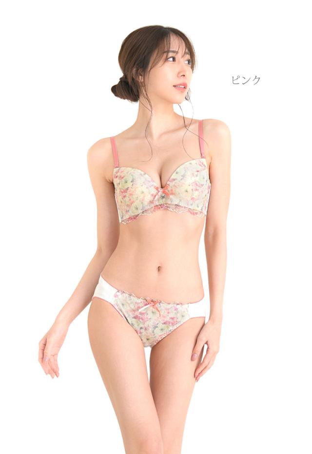 フラワープリント 刺繍レース 脇高 ブラジャー ショーツ セット 下着(J-1255) レディース ピンク ミント A B C D 65 70 75 bs2410