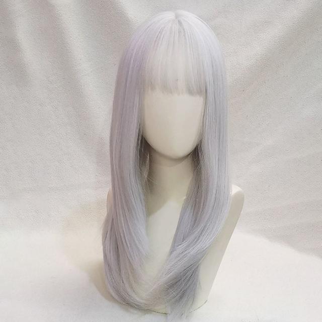 中世の貴族風 ストレート シルバーホワイト 銀髪 フルウィッグ かつら 女性 長髪 ミディアムウィッグ ミディアムヘア ロリータ lolita 前髪あり 自然 可愛い wig コスプレ 耐熱ウィッグ 小顔効果 コスチューム 仮装 文化祭 学園祭 演劇 舞台 イベント 変装 女装 dp248x1x1m5