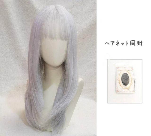 中世の貴族風 ストレート シルバーホワイト 銀髪 フルウィッグ かつら 女性 長髪 ミディアムウィッグ ミディアムヘア ロリータ lolita 前髪あり 自然 可愛い wig コスプレ 耐熱ウィッグ 小顔効果 コスチューム 仮装 文化祭 学園祭 演劇 舞台 イベント 変装 女装