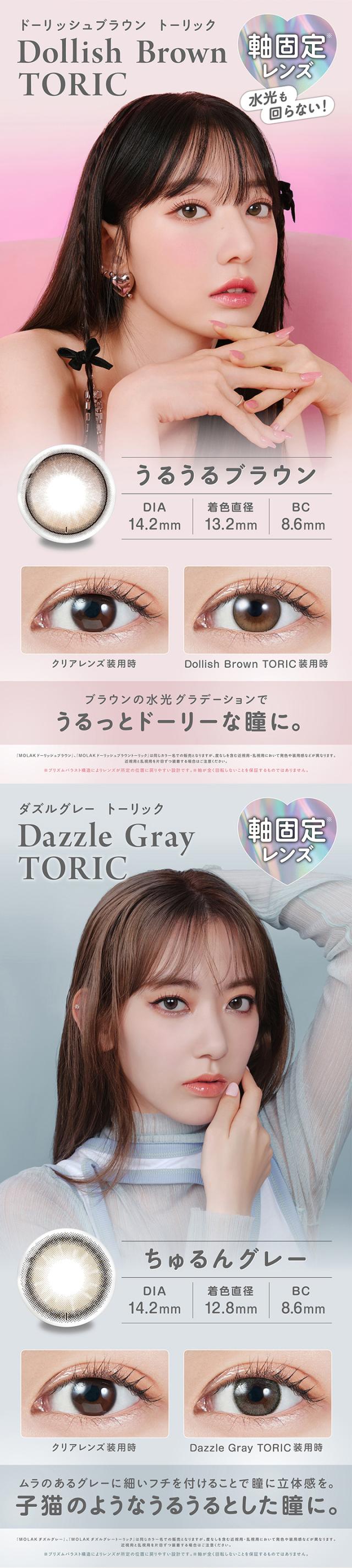 乱視用 カラコン モラクトーリック ワンデー 1箱 10枚 MOLAK TORIC 1day 14.2mm 度あり 1日使い捨て 宮脇咲良 カラーコンタクト カラーコンタクトレンズ ブラウン グレー