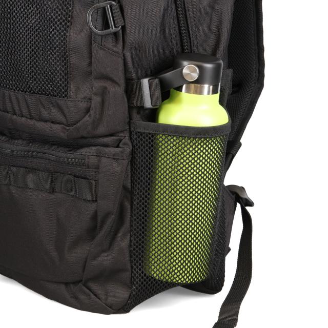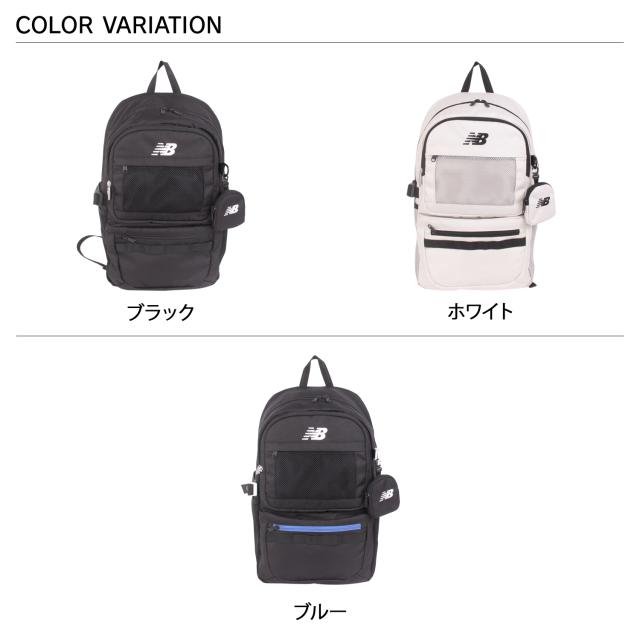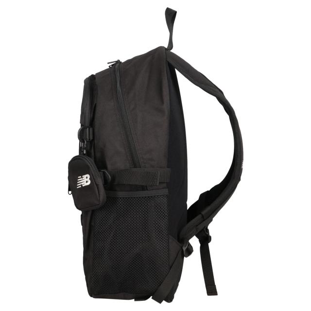 ニューバランスの大型デイパック。シンプルで普段使いの他、通学、通勤にも使いやすいデザイン。小物を入れられるミニポーチが付いています。前面のメッシュポケットは小物を入れて、自分の好きなイメージが演出できます。フロント上部のポケットは小物の収納に便利な小分けポケットが付いています。メインルームにはPC用のスリーブが付いています。付属品:ミニポーチ。