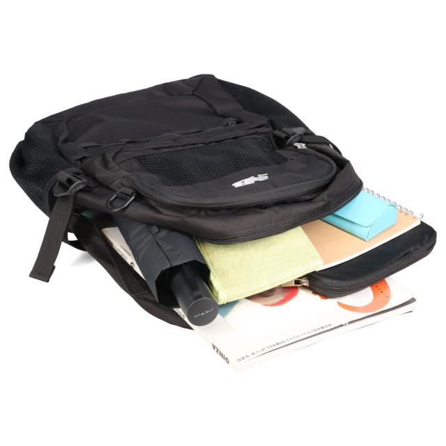 外側:外側1:ファスナー式ポケット×1 オープンポケット×2 ペン入れポケット×3 ファスナー式メッシュポケット×1 外側2:ファスナー式ポケット×1 サイドメッシュポケット×2