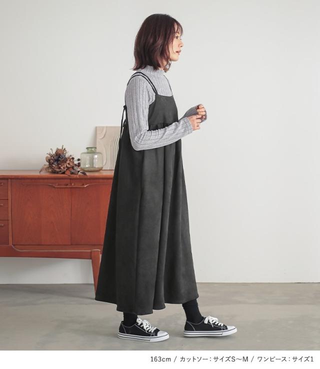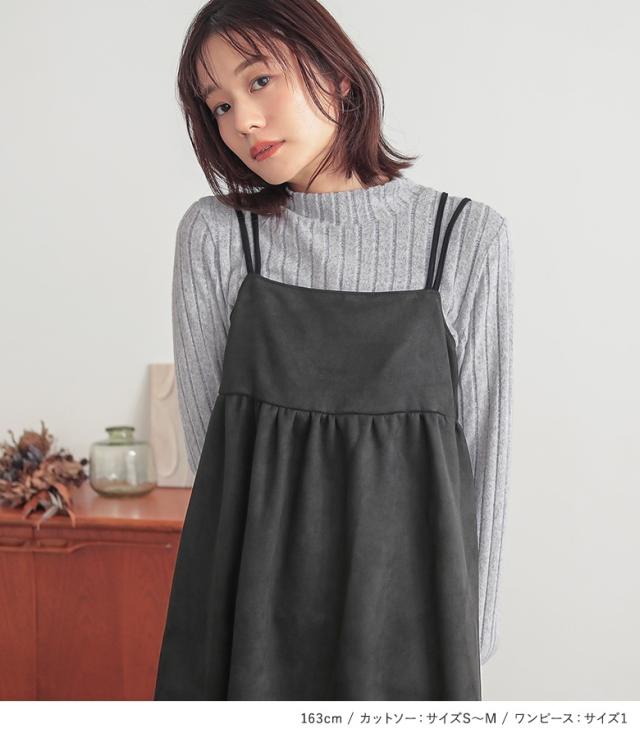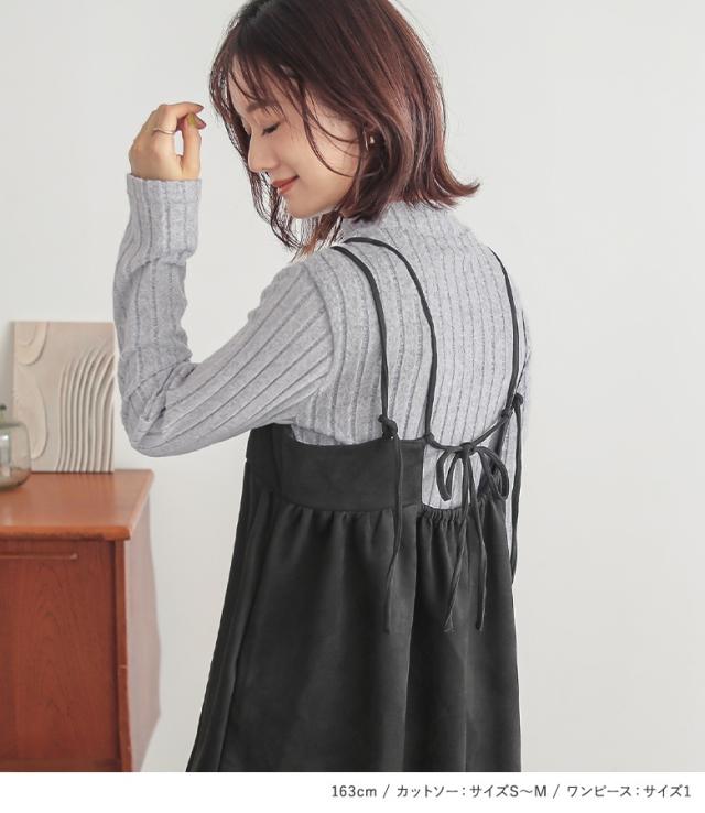 【送料無料】『起毛リブハイネックカットソー×フェイクスウェードキャミワンピースコーデ2点SET』【メール便不可】【40】[2点コーデセット 2024 レディース カットソー 長袖 トップス ワンピース ノースリーブ]