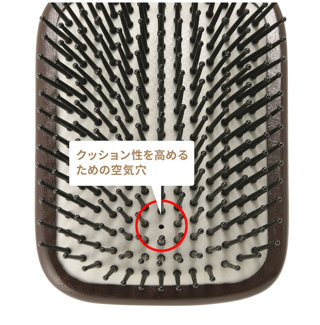 ◯ブラシ下部中央に開いている穴は、クッション性を高めるための空気穴です。