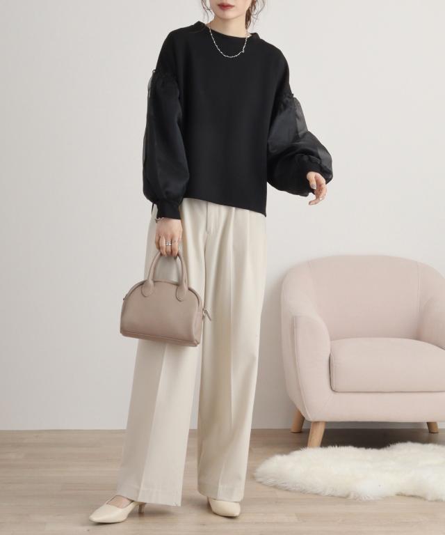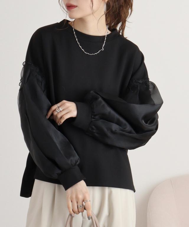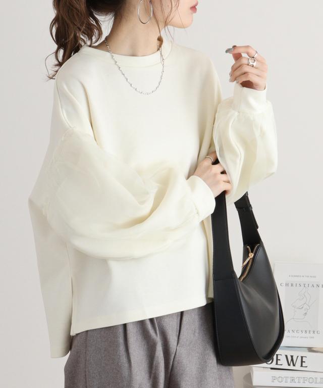 ■point トレンド感溢れるボリュームスリーブと軽やかなオーガンジー素材が特徴のプルオーバーです。
