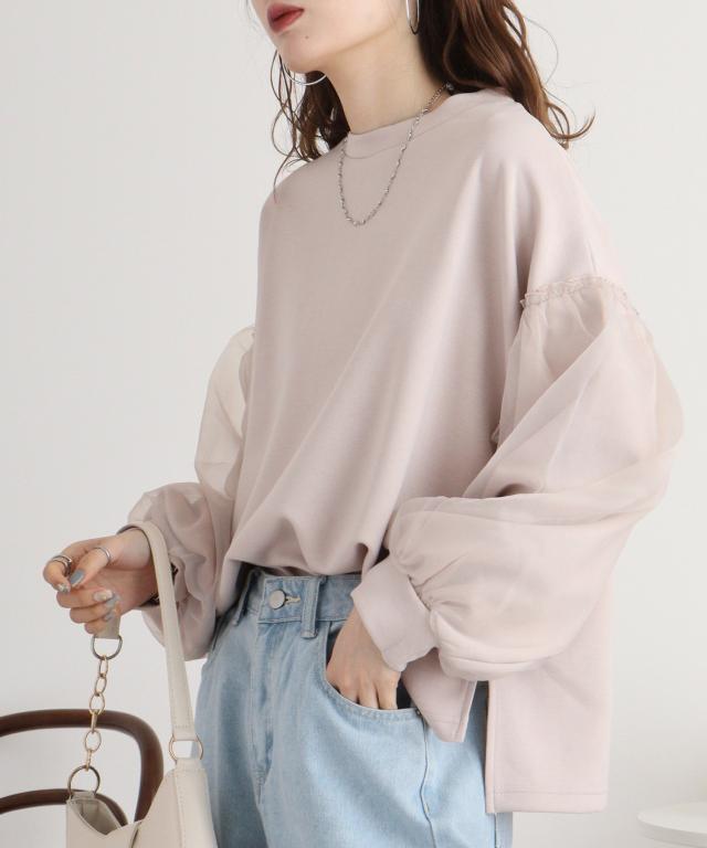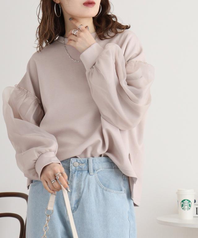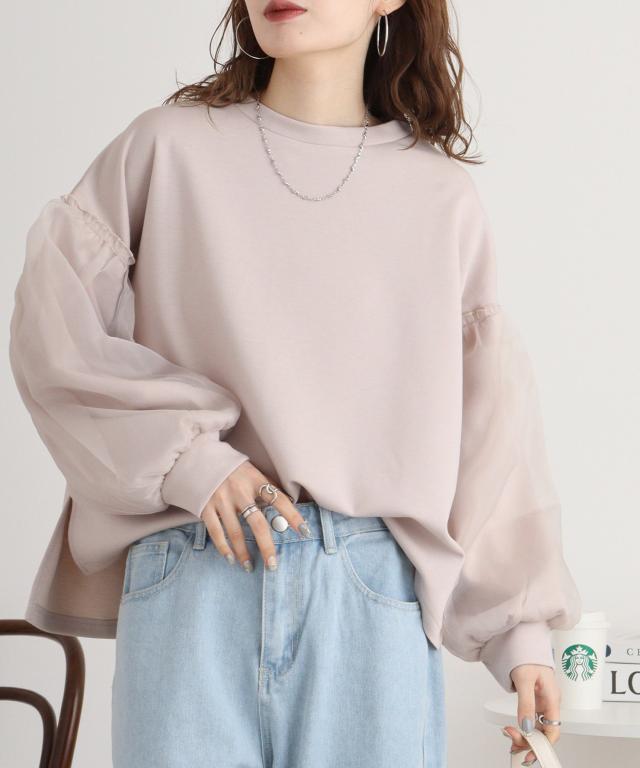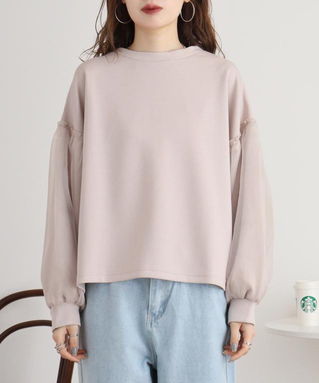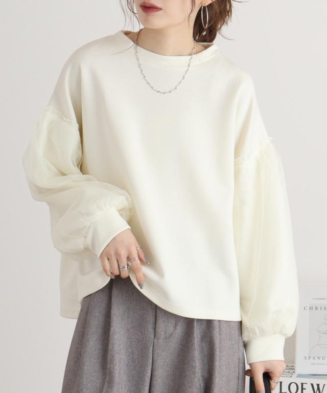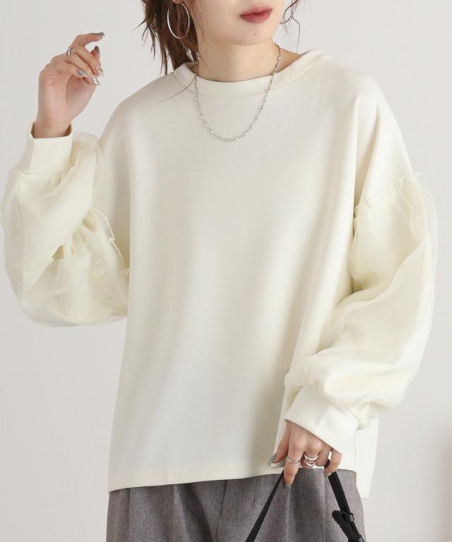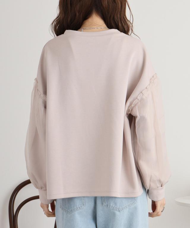 ダンボール袖ボリュームオーガンジープルオーバー