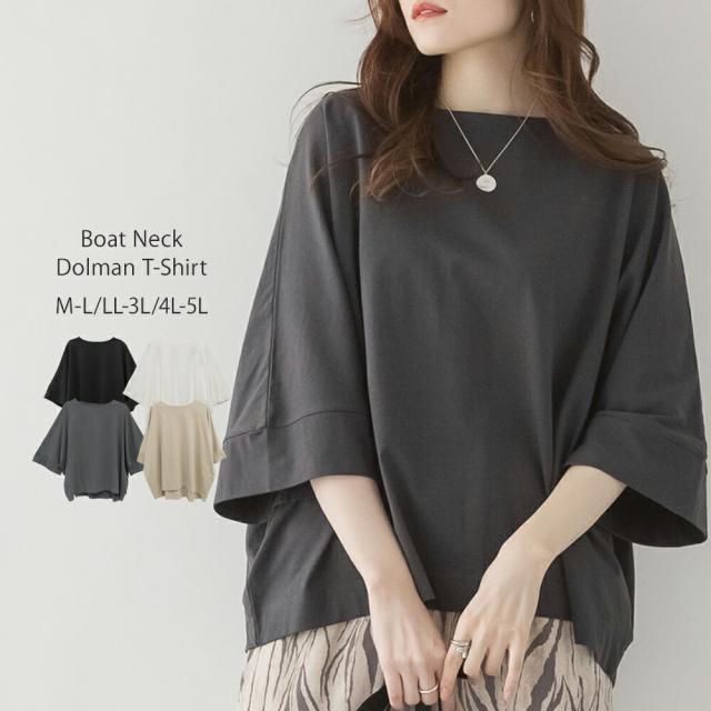冬新作 大きいサイズ レディース 長袖 ボートネック7分袖ドルマンTシャツ トップス シャツ M L LL 3L 4L 春夏秋冬