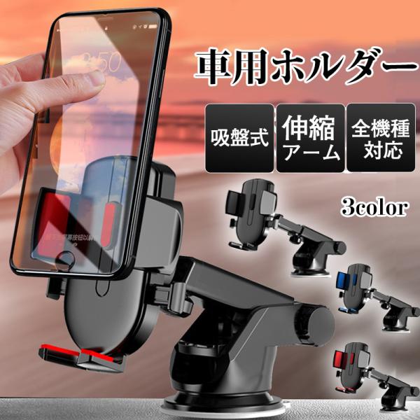 スマホホルダー 車載ホルダー 車用 スマートフォン スマホ 吸盤式 伸縮アーム 全機種対応 シンプル iphone 14 13 12 ワンタッチ