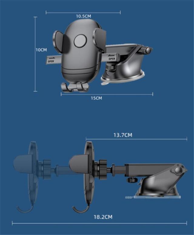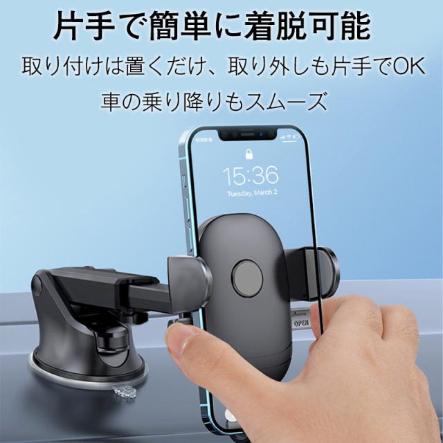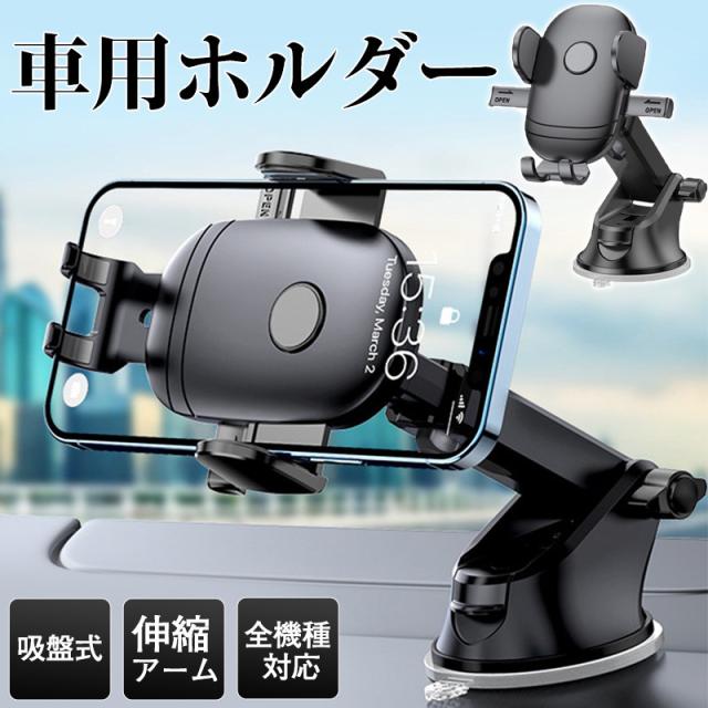 スマホホルダー 車載ホルダー 車用 スマートフォン スマホ 吸盤式 伸縮アーム 全機種対応 シンプル iphone 14 13 12 ワンタッチ 車