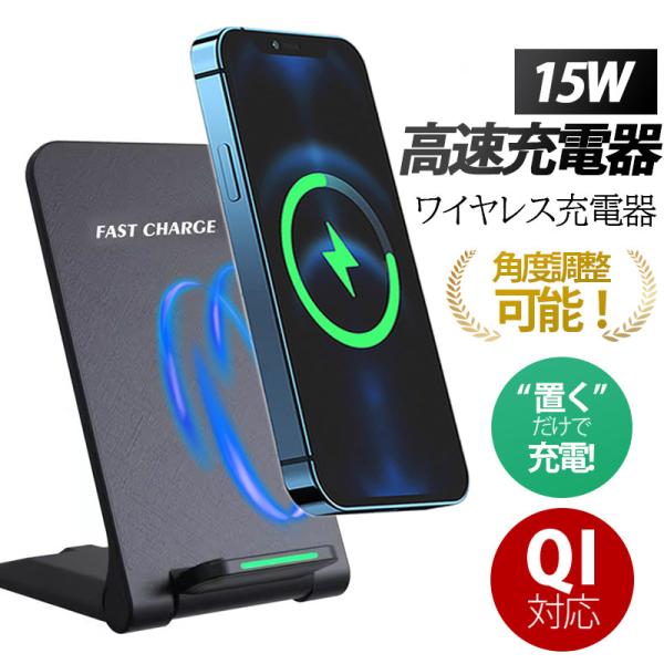 即納 ワイヤレス充電器 15w iPhone 15 14 13 12 Andriod 置くだけ 充電スタンド 充電器 ワイヤレスチャージャー Qi急速充電