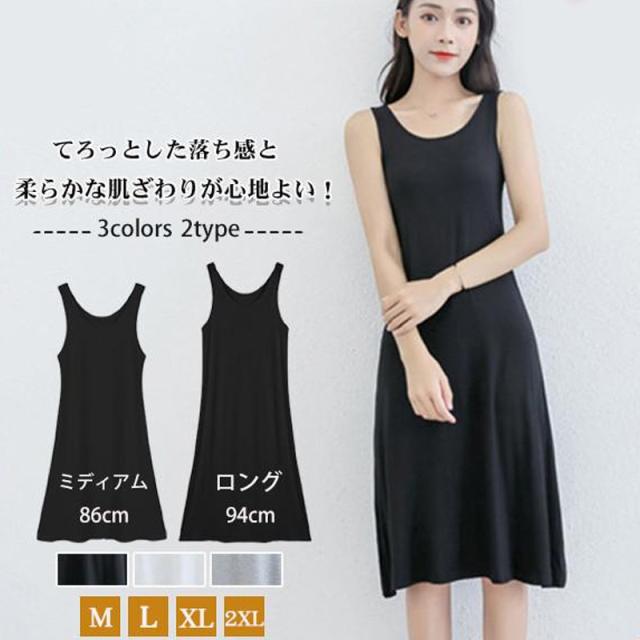 一部即日発送 ワンピース レディース キャミワンピース キャミソール ペチコート 下着 重ね着 無地 インナー 透け防止 ロング ミディアム 膝丈