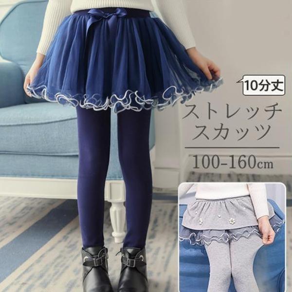 子供服 スカッツ 女の子 キッズ ロングパンツ パンツ スカート レギンスパンツ 重ね着 ボトムス 10分丈 レース柄 チュチュスカッツ こども