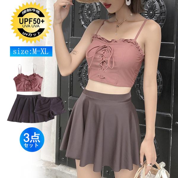 水着セット レディース 水着 2点セット ノンワイヤー 体型カバー 韓国風 カジュアル きれいめ 母の日 プレゼント 上品 エレガント 温泉 可愛い