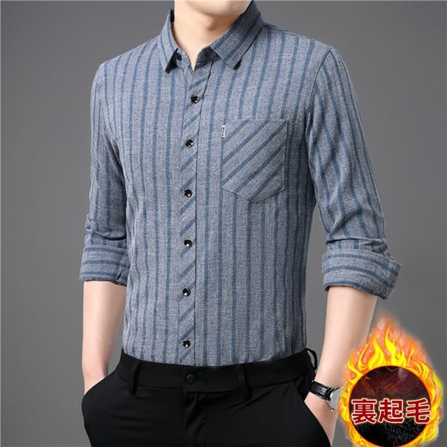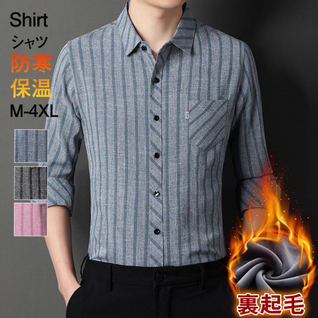 シャツ メンズ 裏起毛 カジュアルシャツ ストライプ柄 トップス 長袖 ビジネス 裏ボア カジュアル ビジネス 防寒 暖かい 保温 通勤通学 おしゃれ