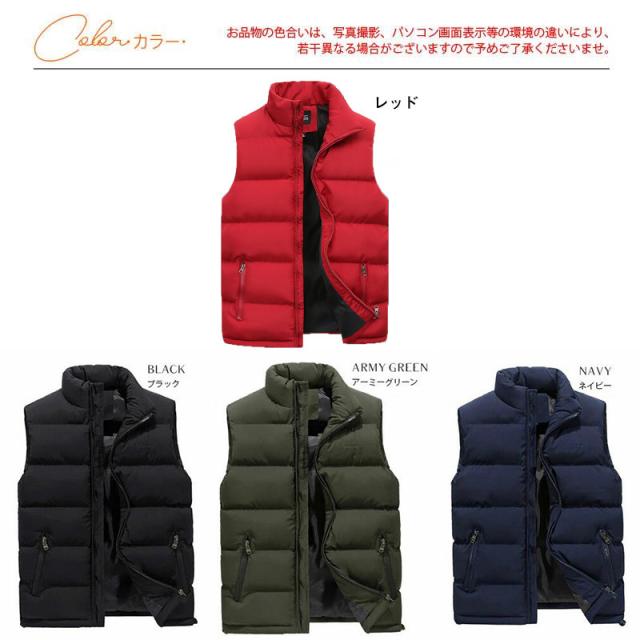 商品詳細カラー:/ブラック/アーミーグリーン/ネイビー/レッドサイズ:/M/L/XL/2XL/3XL/4XL/5XL----------■商品説明デザインがシンプルなので様々なレイヤードを楽しめるアイテム。お部屋着としてもご使用される方も多く、寒い日々の必需品として人気で、アウトドアからタウンユースまで、幅広く活用できる1着です。----------■商品仕様素材:ポリエステル、その他詰め物:中綿●サイズは小さめですが、1-2サイズアップをススメです。----------■ご注意●生産の関係により写真と色、柄が若干異なる場合があります。●生産時期によりサイズ表にご案内の数字に誤差があります。また商品毎に個体差がございます。ご了承お願いいたします。----------■キーワード中綿ベスト メンズ ダウンベスト ベスト 防寒ベスト トップス ジップアップ シンプル カジュアル アウトドア 防寒着 通勤通学 おしゃれ 普段着 保温 防風 暖かい 部屋着 ルームウェア コーデ 大きいサイズ 敬老の日 プレゼント ギフト 紳士服 ゆったり クリスマス お出かけ トレンド