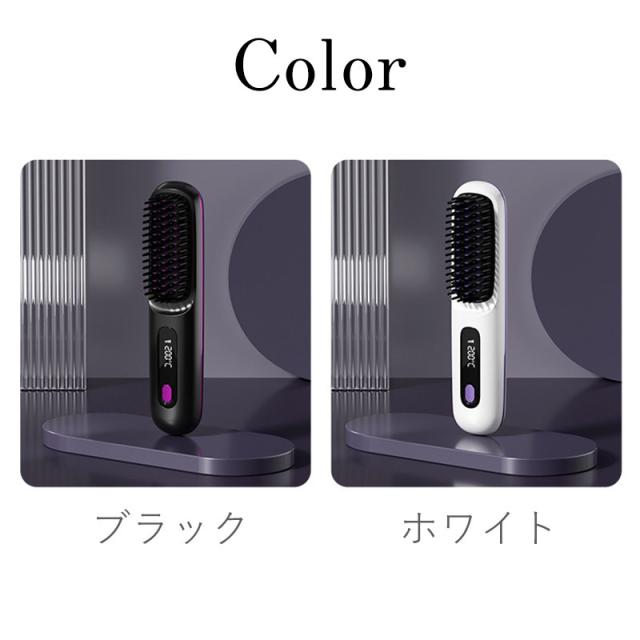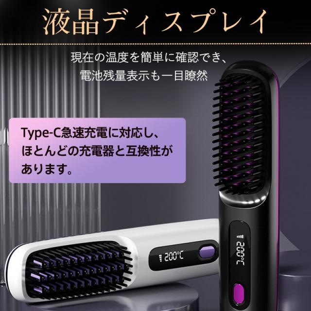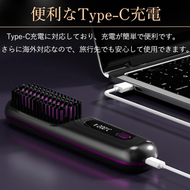 ヘアアイロン ストレート ヘアアイロンブラシ コードレス ヒートブラシ Type-C充電式 携帯用 3段階温度調整 急速加熱 軽量 ヘアケア
