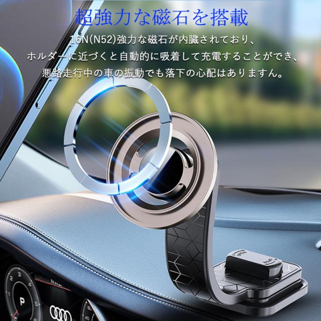 車載ホルダー 車載スマホホルダー 360度回転 マグネット 車載 超強力 Magsafe 片手操作 カー用品 取り付け簡単 コンパクト 全車種対応