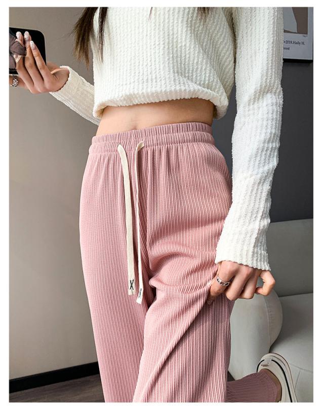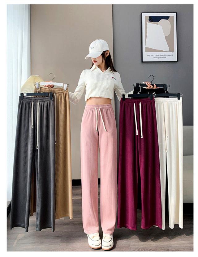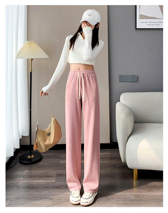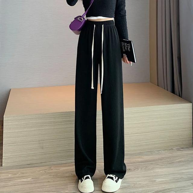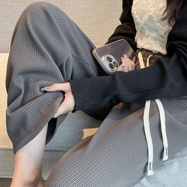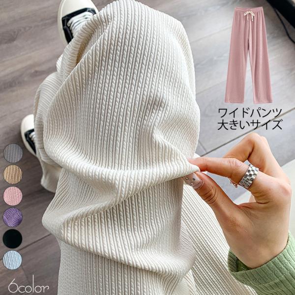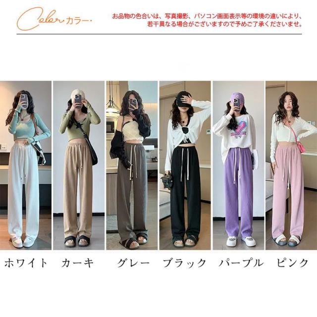 『2点ご購入で200円OFF』ワイドパンツ レディース ロングパンツ スウェットパンツ ボトムス ハイウエスト 無地 カジュアル 春秋 ゆったり おしゃれ 体型カバー