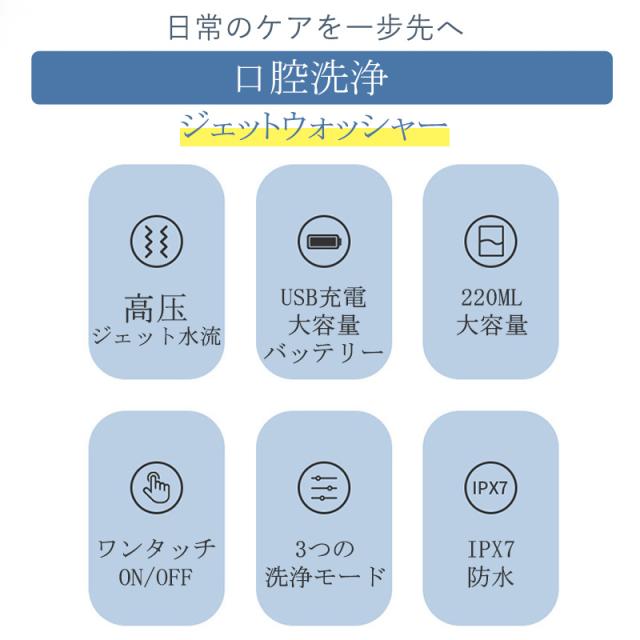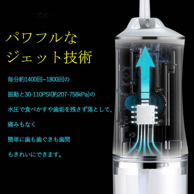 口腔洗浄器 ジェットウォッシャー 口腔洗浄機 歯ジェットウォッシャー 歯垢除去 替えノズル4本付き ウォーターフロス 歯間 歯石ジェット洗浄 USB充電式 電動 大容量 IPX7防水 簡単操作 省スペース 電動歯ブラシ 水流歯ブラシ コンパクト