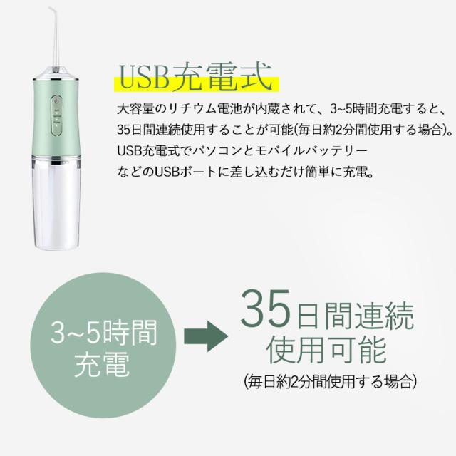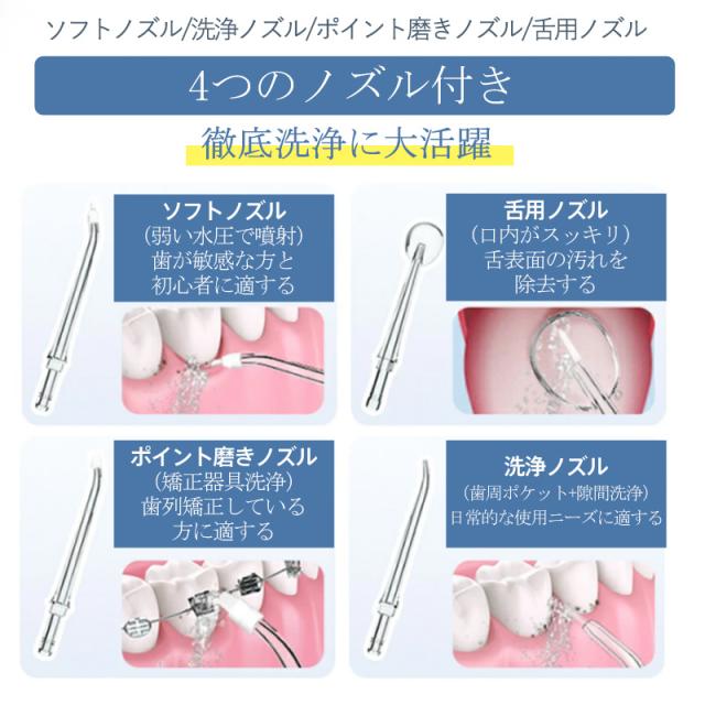 即納 口腔洗浄器 ジェットウォッシャー 口腔洗浄機 歯垢除去 替えノズル4本付き ウォーターフロス 歯間 歯石ジェット洗浄 USB充電式 電動 大容量
